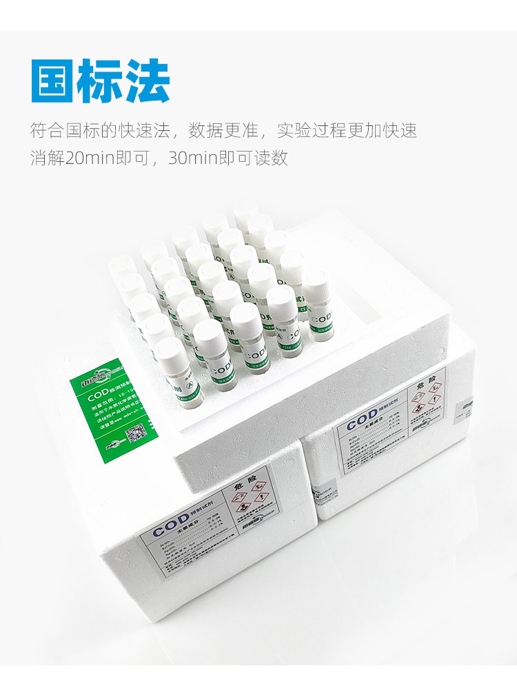 符合國標的快速法,數(shù)據(jù)更準,實驗過程更加快速消解20min即可,30min即可讀數(shù)