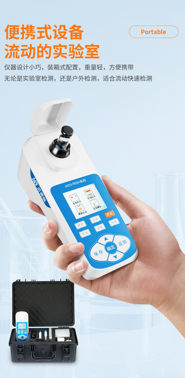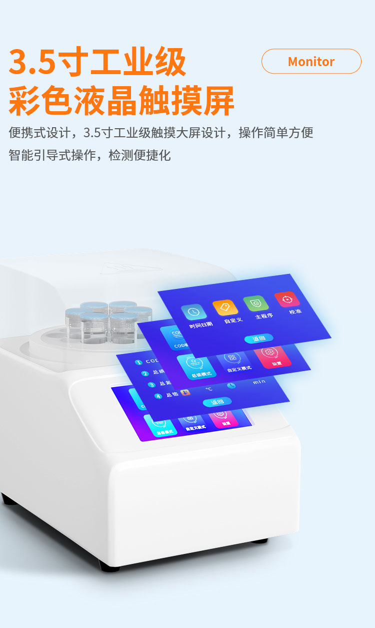 便攜式COD快速測(cè)定儀基于權(quán)威認(rèn)證方法——HJ/T399-2007《水質(zhì) 化學(xué)需氧量的測(cè)定 快速消解分光光度法》標(biāo)準(zhǔn)研發(fā)設(shè)計(jì),運(yùn)用密閉消解管密閉消解,在強(qiáng)酸性溶液中,用含有一定量重鉻酸鉀的專用氧化劑,在催化劑的作用下于165℃恒溫消解,使水中還原性物質(zhì)被氧化,在不同波長(zhǎng)下測(cè)定水樣中Cr6+和Cr3+的吸光度,利用吸光度計(jì)算出水中COD的含量值。采用消解比色一體管檢測(cè),讓檢測(cè)更加簡(jiǎn)單、安全。儀器以其外觀設(shè)計(jì)小巧、檢測(cè)快速、操作簡(jiǎn)單、成本低等特點(diǎn),廣泛應(yīng)用于應(yīng)急監(jiān)測(cè)、污水處理、化工、制藥、醫(yī)院廢水、食品、印染等行業(yè)廢水檢測(cè)方面,還可以應(yīng)用于科研單位、大中專院校等機(jī)構(gòu)的廢水研究使用。