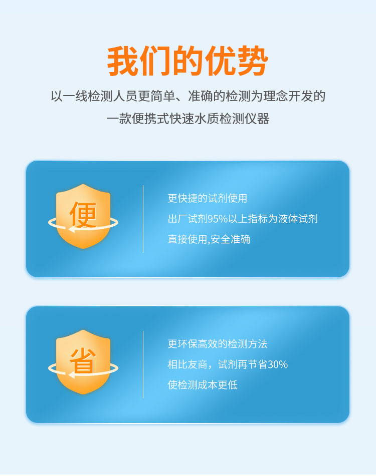 5、用戶還可以自行開發(fā)用戶程序和試劑,以適應(yīng)不同場(chǎng)合不同水體狀況。