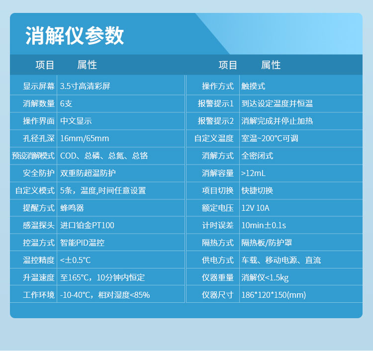 5、通于COD、總磷、總氮、總鉻等項(xiàng)目的消解。