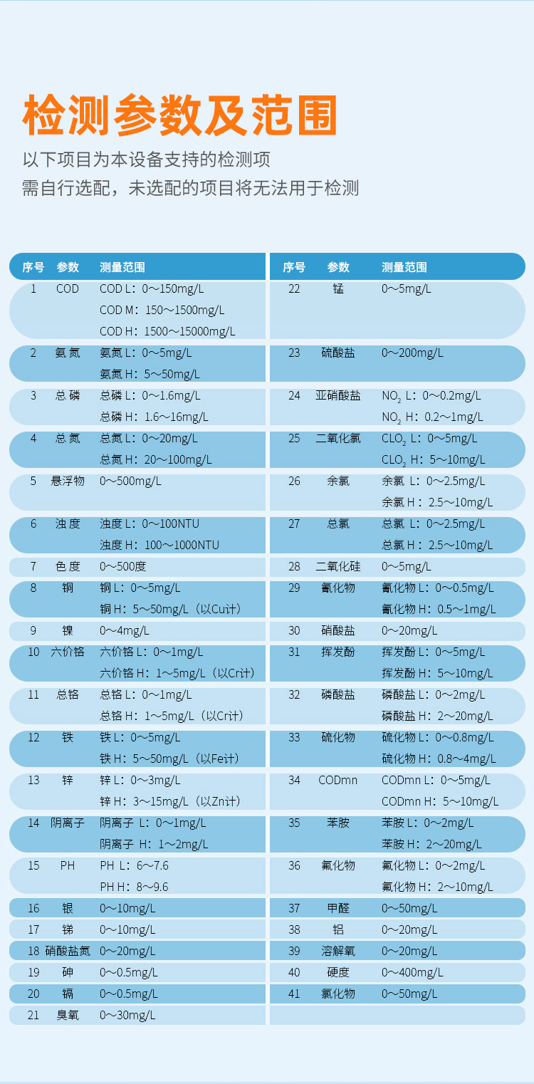 | 測(cè)量參數(shù) | COD(化學(xué)需氧量) |