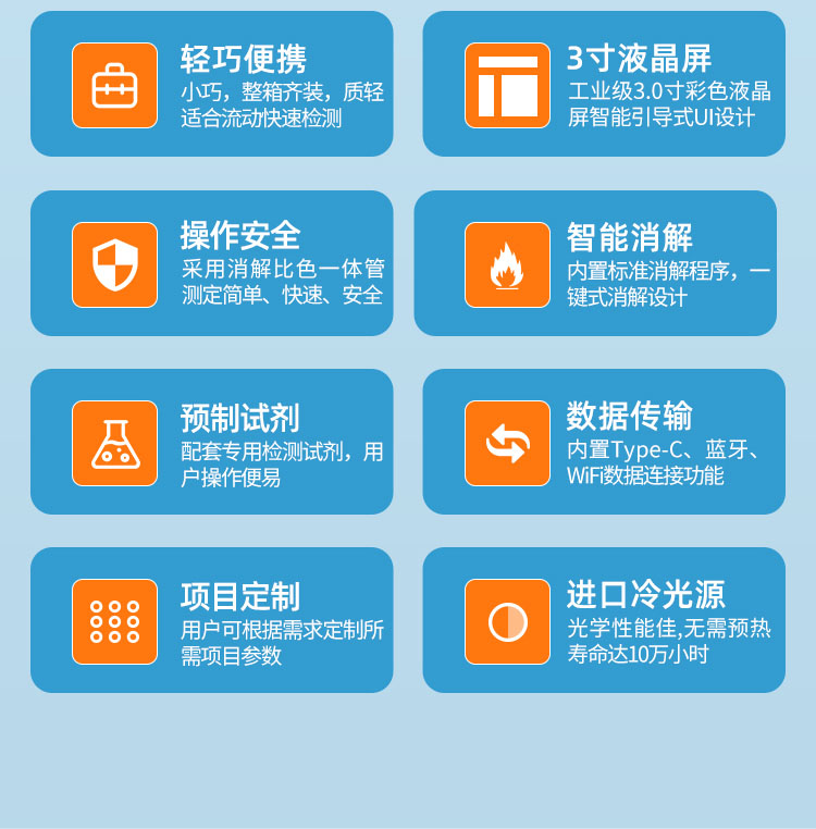 7、操作安全:采用消解比色一體管,測(cè)定簡(jiǎn)單、快速、安全。