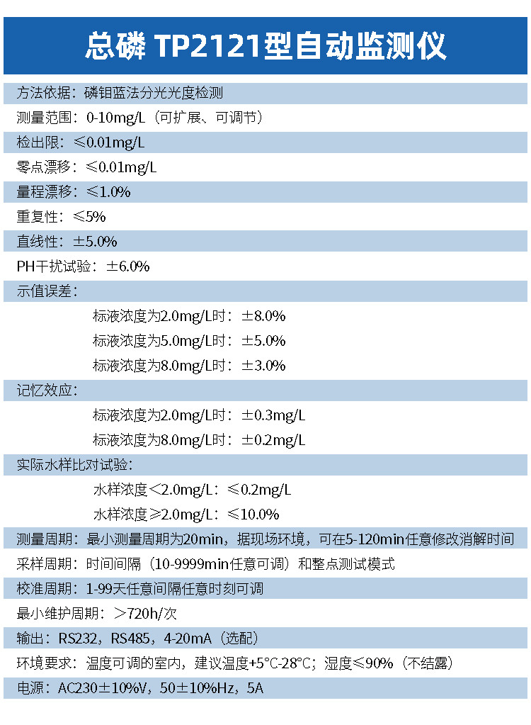 ◆ 高精度檢測:采用鉬酸銨分光光度法,檢測精度達±2%,最低檢出限0.01mg/L