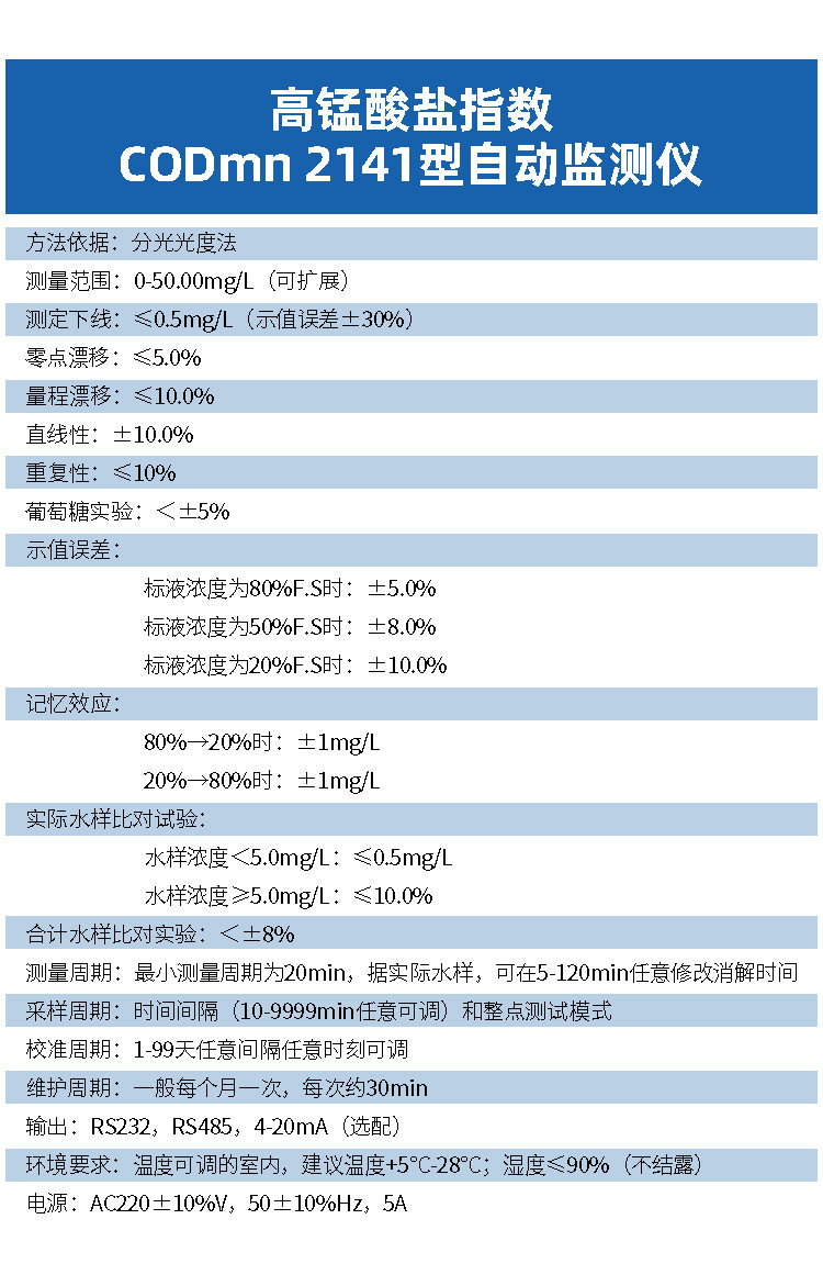 MDS-811高錳酸鹽指數(shù)(CODmn)在線檢測儀采用高錳酸鉀消解分光光度法,符合國標要求。優(yōu)化的內(nèi)部結(jié)構(gòu)使其操作更加簡單快捷,在線數(shù)據(jù)輕松獲取,更易與實驗室數(shù)據(jù)、國標數(shù)據(jù)對比。